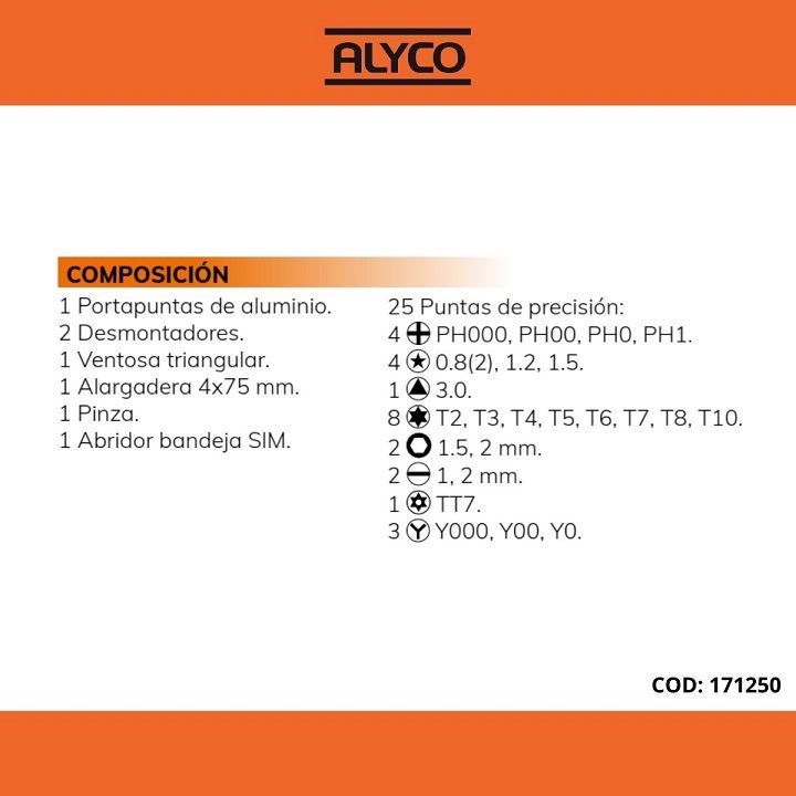Σετ εργαλείων ηλεκτρονικών επισκευών ALYCO ORANGE 32τεμ. 171250