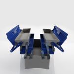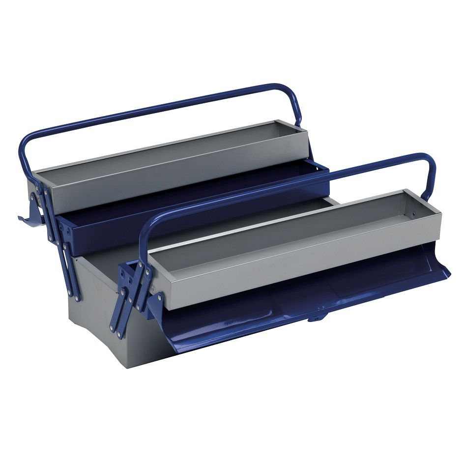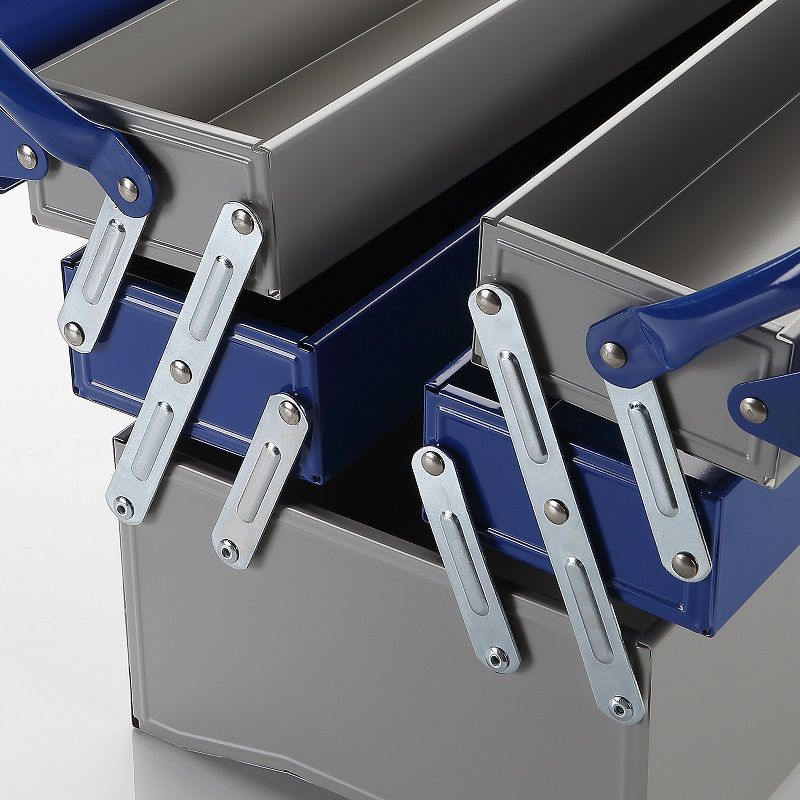 ¦ Πάχος λαμαρίνας 0.6 mm. ¦ 4 θέσεις διαστάσεων 500x95x50 mm. ¦ 1 βασική θέση διαστάσεων 500x200x125 mm. ¦ Ηλεκτροστατική βαφή σε δύο χρώματα. ¦ Στέγνωμα σε φούρνο. ¦ Αναδιπλούμενες λαβές.